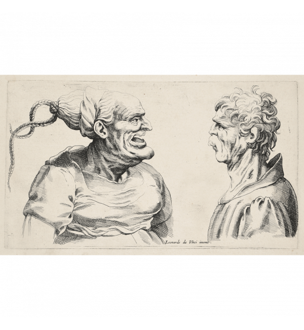 Antes atribuido a HOLLAR, Wenzel (Praga, 1617 - Londres, 1677), según diseño de Leonardo da Vinci. Pareja de bustos grotescos femenino y masculino.